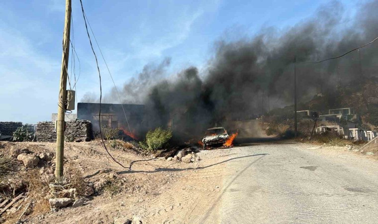 Muğla’nın Bodrum ilçesinde atık yakarken çıkan yangın, otomobile sıçradı. Tamamen yanan otomobil, metal yığınına döndü.