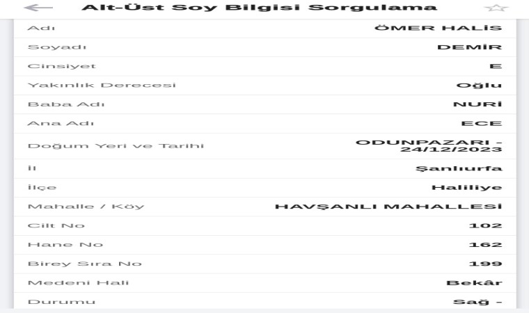 “Eşimle ilk tanıştığımızdan beri zaten isminin Ömer Haliç Demir olmasını istiyorduk. Sürekli bunu konuşuyorduk kendi aramızda. Büyüdüğü zaman asker olması için onu teşvik edeceğim. 15 Temmuz darbesi olduğunda ben küçüktüm ama yine de hatırlıyorum, çok etkilenmiştik o zaman. Sürekli ağladığımı hatırlıyorum. O zamandan beri aklıma düşmüştü Ömer Halis ismi olarak. Ömer Halis Demir olarak koyacaktık, şansımıza soyadı tuttu ve soyadı ’Demir’ oldu. Ömer Halis ismini koyduk. Eşimin işi gereği o sık sık şehidin mezarına uğruyor ziyaret ediyor, dualarını eksik etmiyor. Ben fazla gidemiyorum oralara. O yüzden daha hiç uğrama fırsatım olmadı. Ailesiyle tanışmayı çok istiyoruz. İnşallah nasip olur, elini öptürmeyi isteriz. Askerimizin 35 kurşunla vurulması, o hain insanların hani onu o hale getirmesi çok duygusal bir olay. Konuşurken bile ağlamamak için zor duruyorum. Mekânı cennet olsun. Sürekli hamileyken de rüyalarımda falan görüyordum. Ömer Halis Demir ismini taşımasından gurur duyuyorum. Umarım o da büyüdüğünde Ömer Halisdemir gibi asker olur. Onun yolunda ilerler, vatanına, milletine saygılı, sevgili bir evlat olur. Onu çok seviyoruz” dedi.