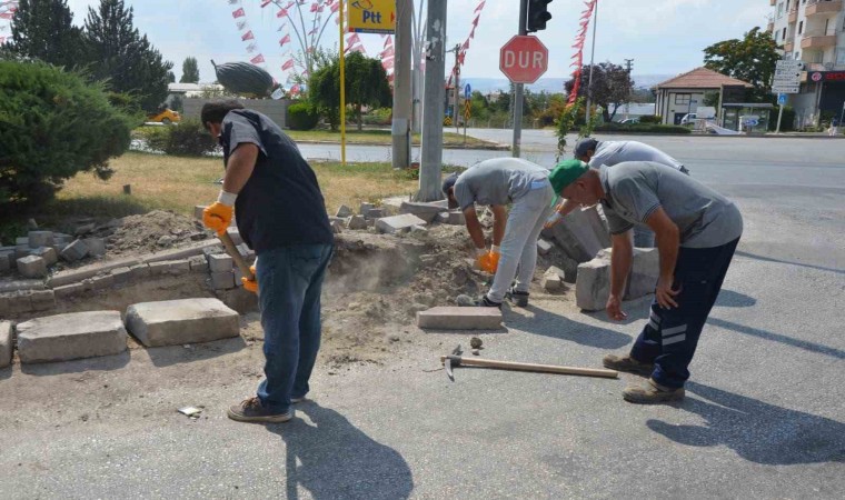 Bu çalışmalar kapsamında, Kayı Mahallesi Fatih Sultan Mehmet Bulvarı’ndaki bozulan kaldırım taşlarının tamirini gerçekleştirdi. Atatürk Mahallesi Belediye Blokları’ndaki ASKİ su arızasının neden olduğu hasar, kilitli taşların onarımıyla giderildi. Öte yandan Satıkadın Parkı yürüyüş yolundaki bordür taşları da ekipler tarafından yenilendi. Mustafa Hakan Güvençer Fen Lisesi’nin iç ve çevre alanlarında ise bozulan mermer ve andezit taşlarının onarımı tamamlandı.