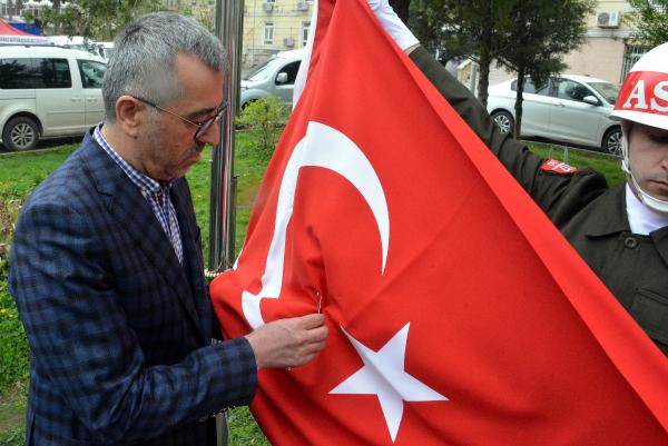 Daha sonra Büyükşehir Belediye Başkanı Hayrettin Güngör, İstiklal Madalyası'nı Türk Bayrağı'na taktı. Saygı duruşu ve İstiklal Marşı'nın okunmasının ardından bir konuşma yapan Güngör, madalyanın şehre verilmesinde kanları ve canlarıyla mücadele eden şehit ve gazileri rahmet yad ettiklerini ve onları unutmayacaklarını belirterek şunları söyledi: