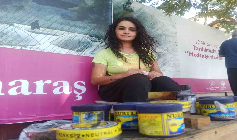 Kahramanmaraş’ın tek kadın ayakkabı boyacısı iki çocuk annesi Özlem Günden, ekmek mücadelesi veriyor.