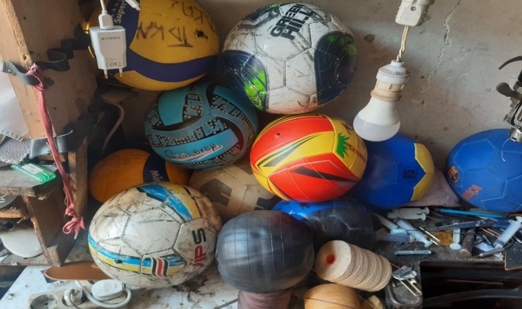 Kahramanmaraş’ta yaşlı esnaf, yarım asırdan fazla top tamirciliği yapıyor.