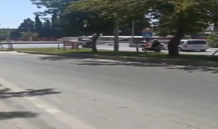 Polis ekiplerinden kaçmak isteyen motosikletli 2 kişi, aniden ana yola çıktığı esnada 01 HN 289 plakalı araca çarptığı anlar, çevrede bulunan bir vatandaşın cep telefonu kamerasına yansıdı.