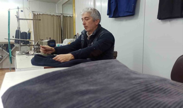 Onikişubat ilçesi Şazibey Mahallesi’nde konteyner iş yerinde terzilik yapan Muzaffer Akbulut, zorlu şartlara rağmen ekmek parasını kazanmaya devam ediyor.