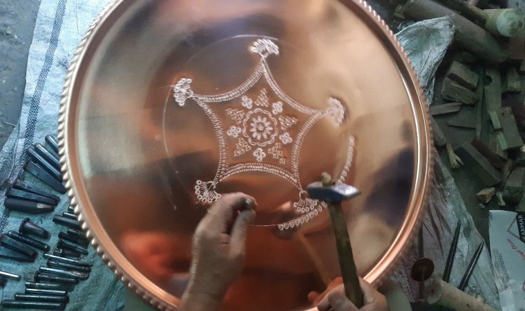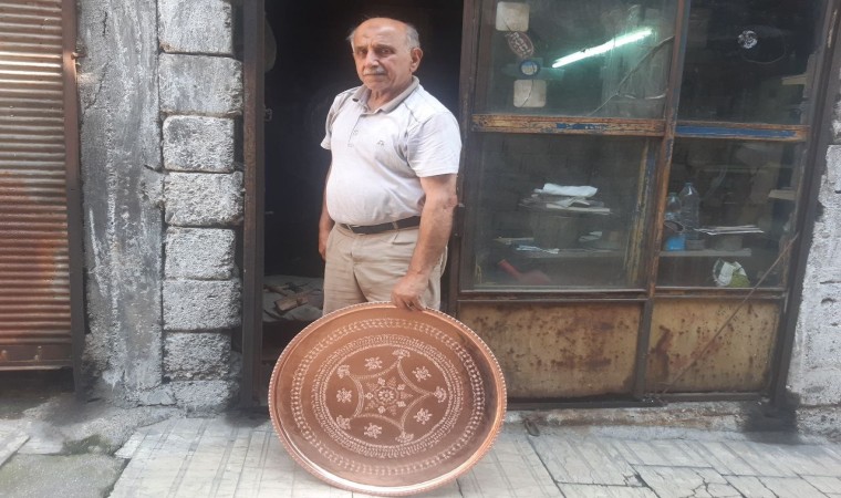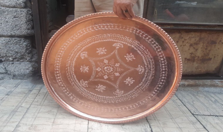 Kahramanmaraş’ta 64 yıldır bakır tepsilere şekil veren esnaf mesleğini severek yapıyor.