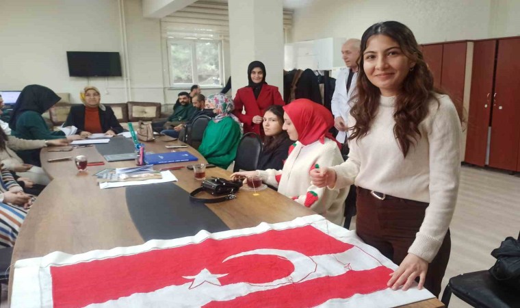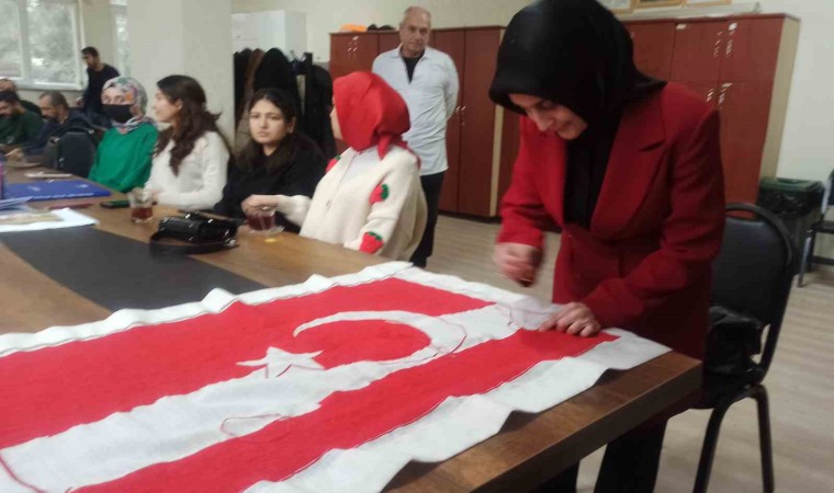 Kahramanmaraş’ta ’Her Şehide bir ilmek arkasından Fatiha’nı oku’ sloganı ile oluşturulan kampanya çerçevesinde binlerce insanın attığı ilmekler ile Türk bayrağı işleniyor.