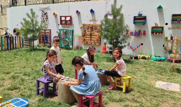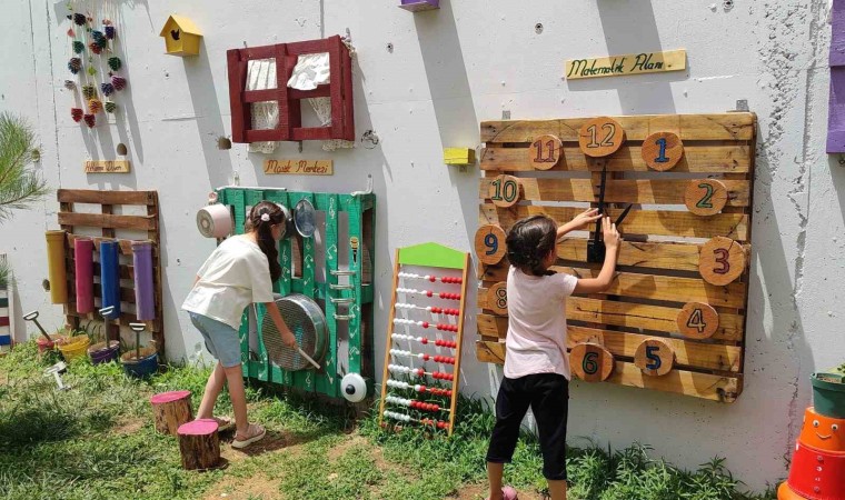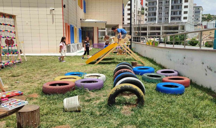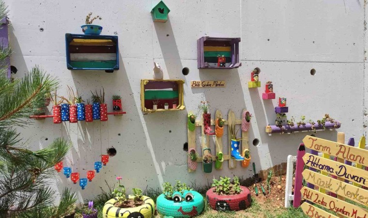 Kahramanmaraş’ta dönüştürülebilir atık malzemelerden, oyun alanları oluşturuldu. Hiç risk taşımayan oyun alanlarında çocuklar güvende oluyor.