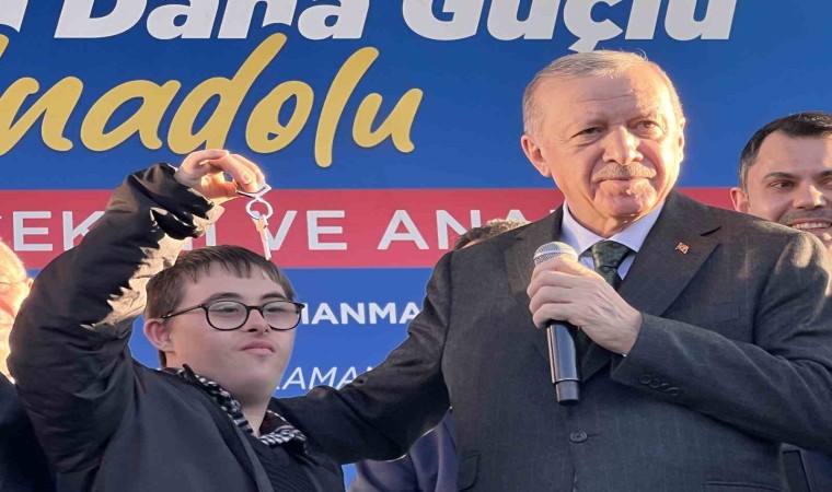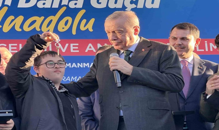 Cumhurbaşkanı Recep Tayyip Erdoğan, 6 Şubat depremlerinin merkez üssü Kahramanmaraş’ta TOKİ tarafından depremzedelere yönelik inşa edilen 155 bininci konutun anahtar teslimi ve kura çekimi için havayoluyla Kahramanmaraş’a geldi. Merkez Spor Kompleksi’nin bahçesinde düzenlenen tören sonunda Erdoğan, Kahramanmaraş’ta 3 bin 499 konutun anahtarlarını kura ile hak sahiplerine teslim etti. Cumhurbaşkanı’nın elinden evlerinin anahtarlarını alan depremzede vatandaşlar büyük mutluluk yaşadı.