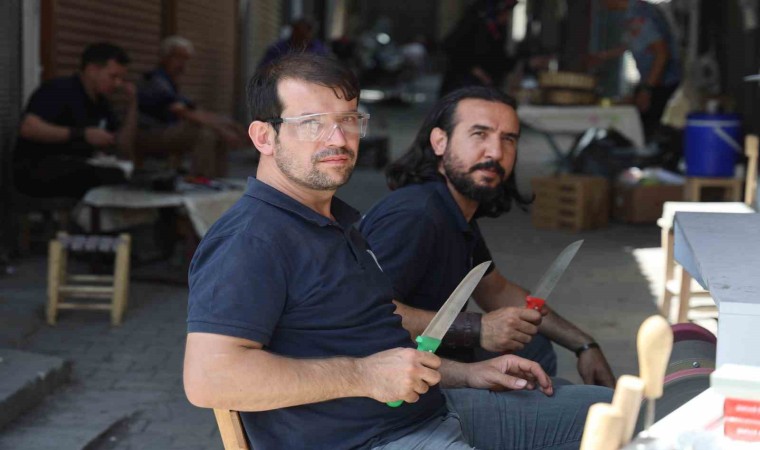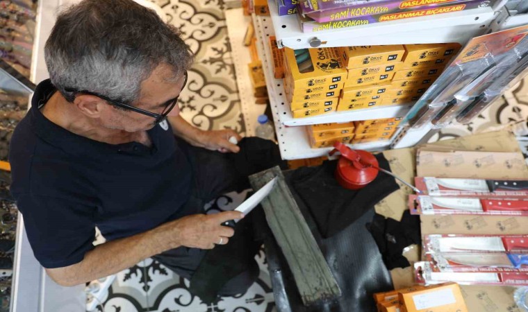 Müşteri Hacı Mehmet Demir, “Ustalarımız işini çok iyi yapıyor bayram öncesi bıçaklarımızı keskinletiyoruz” dedi.