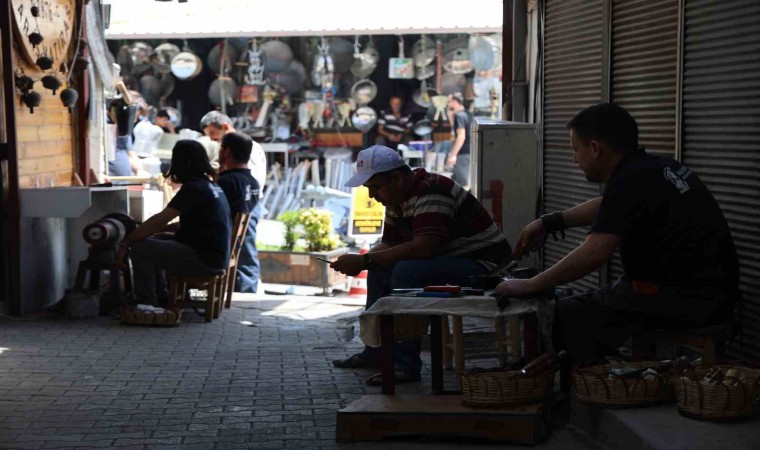 Kahramanmaraş’ta yaklaşan Kurban Bayramı öncesi tarihi demirciler çarşısındaki ustalar günde yaklaşık 20 bin bıçağı kurban için bileyliyor.