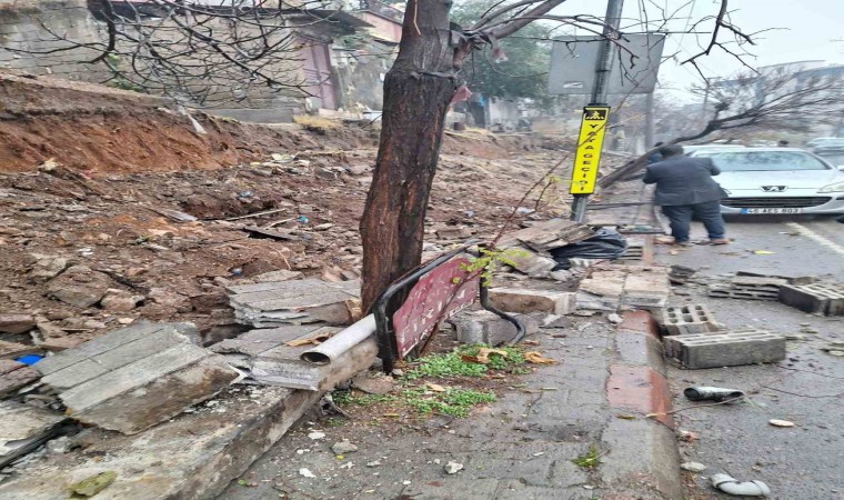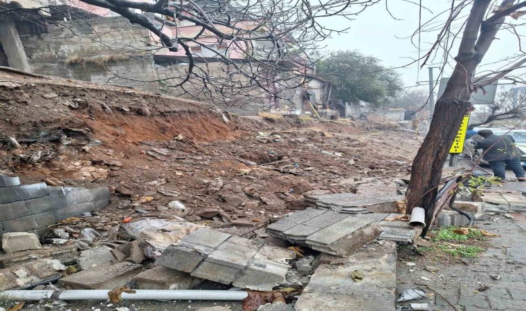 Kahramanmaraş’ta şiddetli yağışlar sonrası istinat duvarı çöktü.