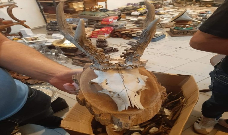 Yapılan aramada, yurtdışından kaçak yollarla getirilen ve satışı yapılan 34 karaca, 1 kızıl geyik ve 1 yaban domuzuna ait trofeler ele geçirildi.
