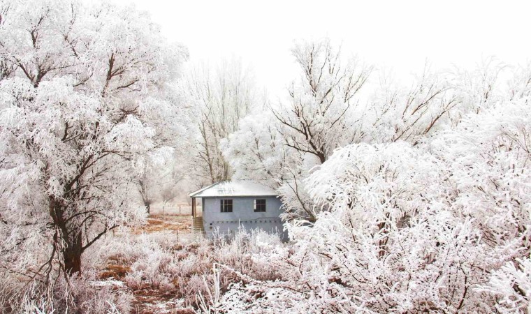 Kahramanmaraş’ta kırağıdan dolayı ağaçlar beyaza büründü.