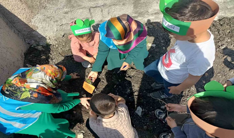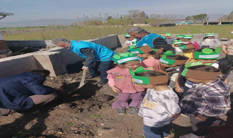 Kahramanmaraş’ta 4-6 yaş arasındaki Kur’an Kursu öğrencileri cami bahçesine fidan dikti.