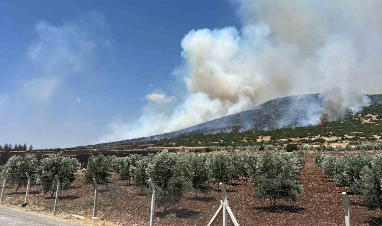 Kahramanmaraş’ın Pazarcık ilçesinde anız yangını makilik alana sıçradı.