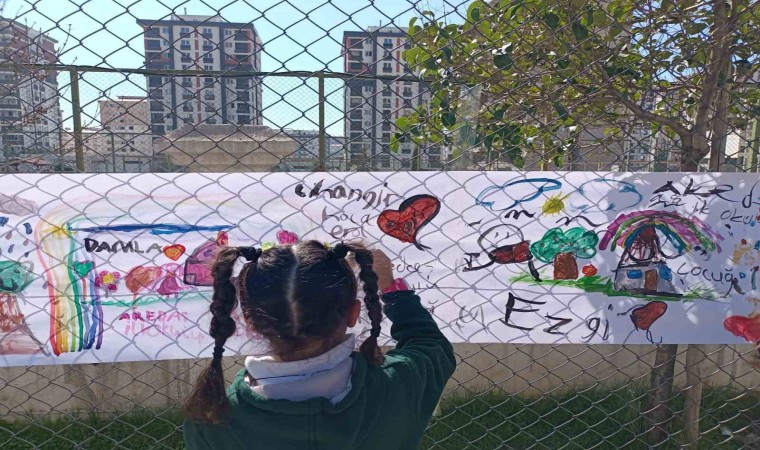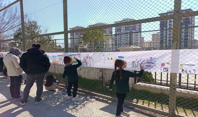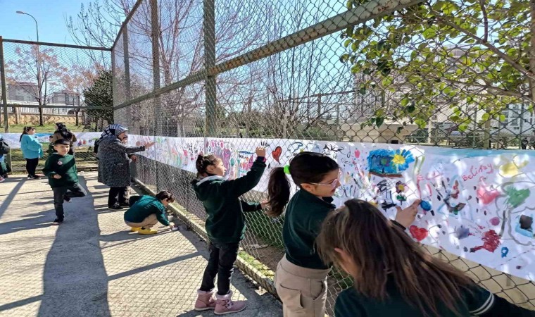 Akedaş İlkokulu Abdurrahim Karakoç Sınıfı öğrencileri, velileri, öğretmeleri öncülüğünde 50 metre uzunluğundaki kağıda sulu boyayla iç dünyalarını paylaşarak çizimler yaptı.