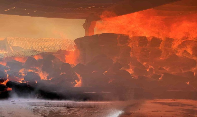 Pamuk balyalarının bulunduğu depoyu kaplayan alevlere karşı itfaiye ekiplerin müdahalesi sürüyor. Alevlerle boğuşan ekipler, yangını kontrol altına almaya çalışıyor.