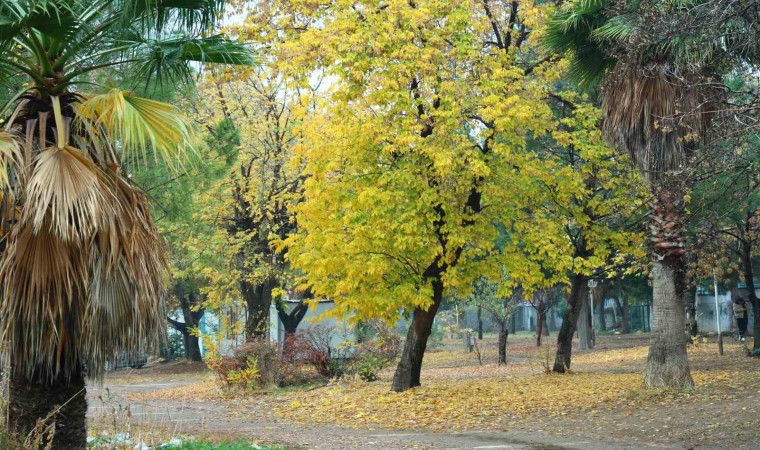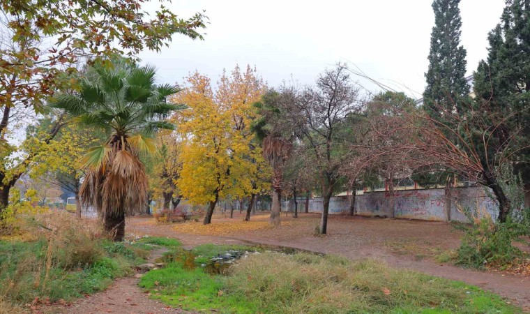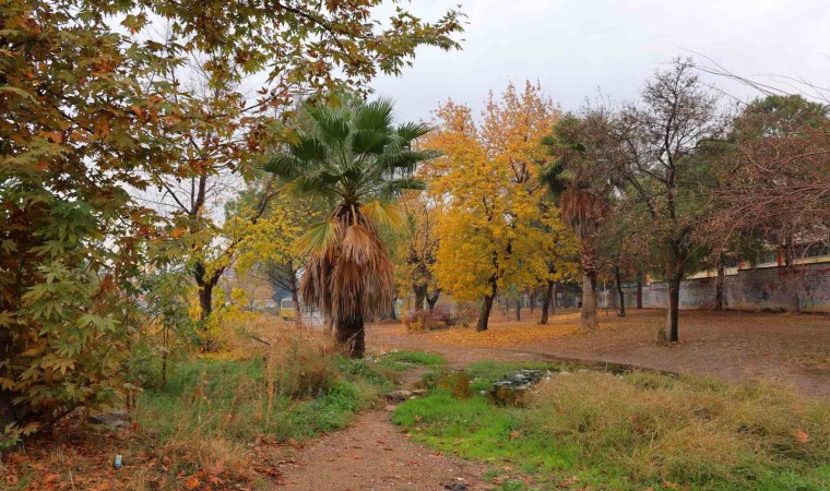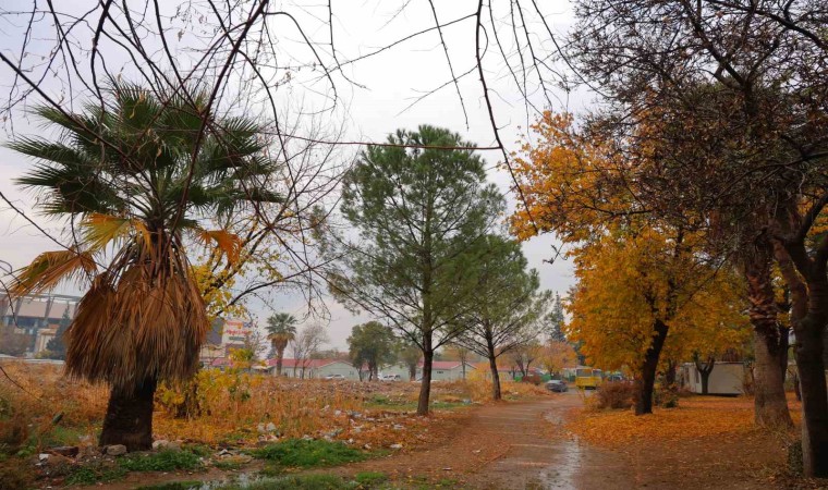 Kahramanmaraş’ta depremin en çok yara aldığı mahalledeki park sonbaharda ağaç yapraklarının rengarenk olmasıyla kartpostallık görüntü oluşturdu.