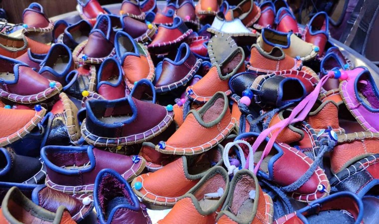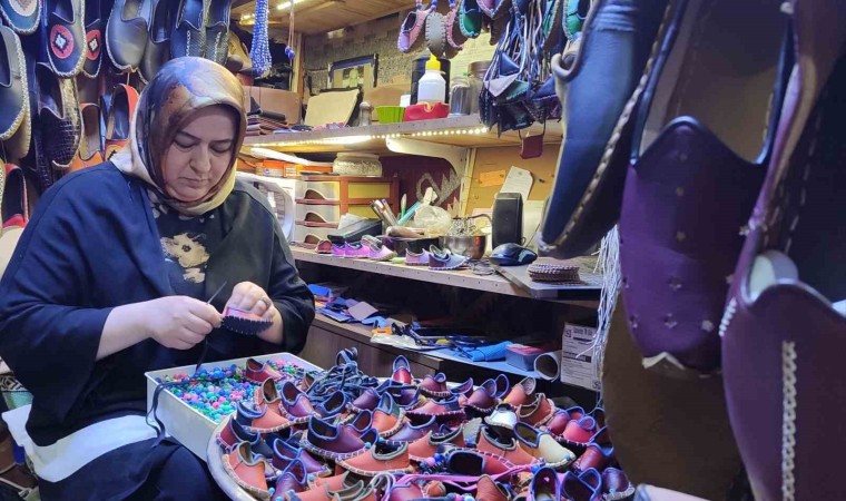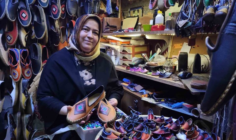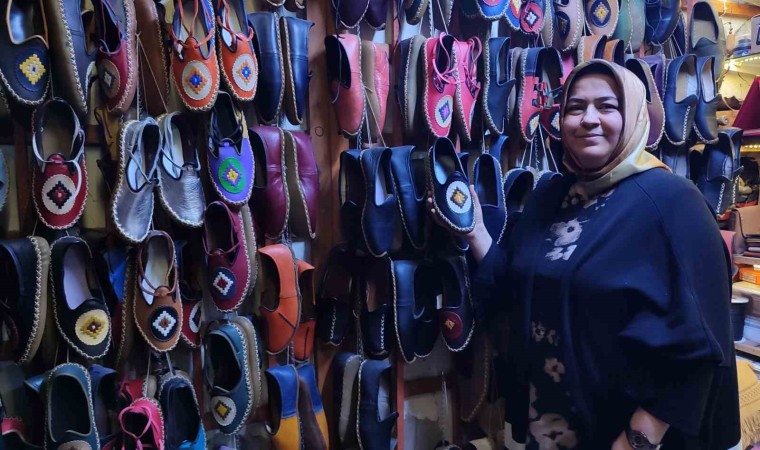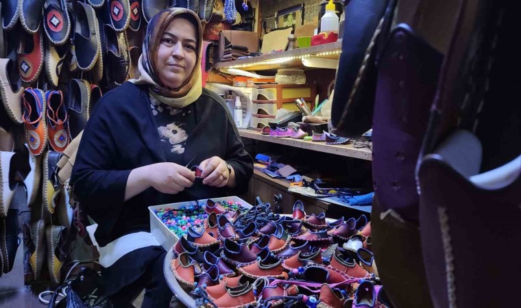 Kahramanmaraş’ta çarık ve yemeni ustası kadın, 30 yıldır dede ve baba mesleğine devam ettiriyor.