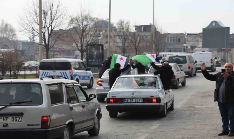 Suriye’de Esed rejiminin düşmesiyle birlikte, Kahramanmaraş’ta yaşayan Suriyeliler sevinçlerini sokaklara taşıdı. Ellerindeki Suriye bayraklarıyla coşkulu bir şekilde kutlama yapan Suriyeliler, araçlarıyla konvoy oluşturarak şehirde tur attı.