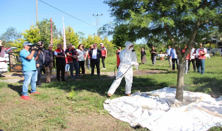 Kahverengi kokarcaya karşı kışlak mücadelesi kapsamında yapılan ilaçlama sonrasında konuşan Samsun İl Tarım ve Orman Müdürü İbrahim Sağlam, “Samsun ilinde, 1 milyon 249 bin 679 dekar alanda, yaklaşık 50 bin civarında üretici fındık tarımı yapmakta olup, fındık önemli bir geçim kaynağıdır. Fındığın en önemli zararlısı olan kahverengi kokarcanın mücadelesi; ülkemiz, bölgemiz ve Türkiye fındık üretiminde 2. sırada yer alan ilimiz ekonomisi açısından önem arz etmektedir. Ayrıca ilimizde ekonomik olarak üretimi yapılan pek çok kültür bitkileri (kivi, şeftali, soya fasulyesi, mısır vb.) içinde zarar potansiyeli bakımından da çok önemlidir. Bakanlığımız ‘Kahverengi kokarca Eylem Planı’ kapsamında; il müdürlüğümüz, 2023 yılında il merkezi ve 17 ilçede toplam 216 kişiden müteşekkil kahverengi kokarca mücadele teknik ekipleri ile saha çalışmaları hız kesmeden devam etmektedir. İl müdürlüğümüzce 2024 yılı başında ‘Entegre Mücadelede Kahverengi Kokarca Popülâsyon İzleme Projesi’ hazırlanarak proje kapsamında üretim sezonunda 17 ilçemizde funnel tuzaklarla kahverengi kokarca popülâsyonu takibi yapılmış olup, sürvey sonuçlarına göre mücadele takvimi belirlenen fındık, kivi, şeftali, soya fasulyesi gibi ürünlerde kimyasal mücadele zamanları ile ilgili üreticilere duyurular yapılmıştı” dedi