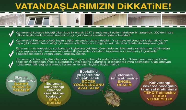 Büyükşehir Belediyesi tarafından bastırılan 15 bin adet el broşürü ve 2 bin 250 adet afiş ile bu konu ile ilgili farkındalık oluşturulması amaçlanıyor. Tarımsal Hizmetler Daire Başkanlığı’nda görevli Ziraat Yüksek Mühendisi Hicran Çıkış Kanca, kahverengi kokarca ile mücadelenin çok güç ve zahmetli olduğunu belirterek çalışmaların aralıksız sürdüğünü söyledi.