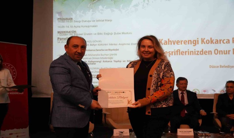Açılış konuşmalarının ardından Tarım ve Orman Müdürlüğü Bitkisel Üretim ve Bitki Sağlığı Şube Müdürü Gülden Ak yönetiminde gerçekleştirilen panelde, Yalova Atatürk Bahçe Kültürleri Merkez Araştırma Enstitüsü Müdürlüğü’nden Dr. Pınar Hephızlı Göksel ‘Kahverengi Kokarca Zararlısı ve Biyolojisi’, Ziraat Yüksek Mühendisi Burhan Şahin ‘Düzce İlinde Kahverengi Kokarca Yayılışı ve Mücadelede Yürütülen Çalışmalar’, Düzce Üniversitesi Ziraat Fakültesi’nden Prof. Dr. İsmet Yıldırım ve Prof. Dr. Emine Demir Özden ise ‘Kahverengi Kokarca Zararlısına Alternatif Mücadele Metotları ve Dünyada Yapılan Çalışmalar’ hakkında bilgiler aktardılar.