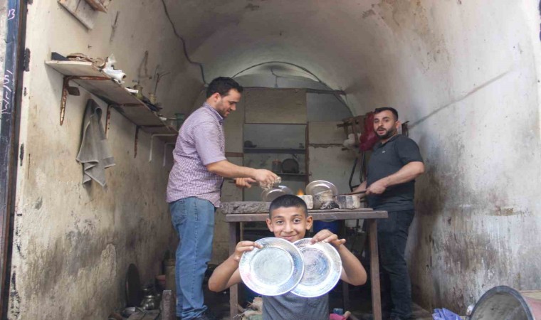 Şanlıurfa’da dededen babaya, babadan oğula geçen kalaycılık mesleğini 55 yıldır sürdüren Ahmet Kalaycı, 20 metrekarelik işyerinde 100 dereceyi aşan sıcaklık altında çalışıyor.