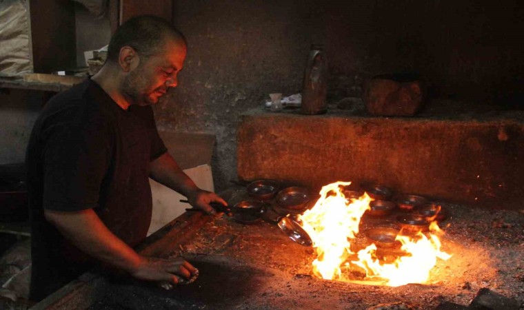 İzmir’in Kemeraltı Çarşısında dededen kalma dükkanda kalaycılık mesleğini sürdüren Yaşar-Aziz Bartık kardeşler, sıcaklığın 40 derece sınırına dayandığı bu günlerde yaklaşık 80 derecelik sıcaklıkta dede mirası mesleklerine sahip çıkıyor.