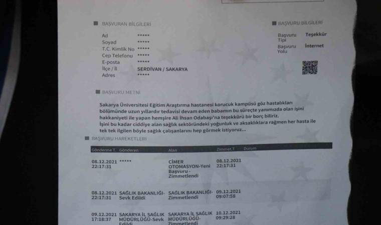 Sakarya Eğitim ve Araştırma Hastanesi Korucuk Kampüsü’nde Göz Polikliniği’nde sorumlu hemşire olarak çalışan Ali İhsan Odabaş, mesleğine ve hastalara gösterdiği ilgiden dolayı vatandaşların teşekkür yağmuruna tutuldu. Şu ana kadar CİMER’den 85 teşekkür belgesi alan Odabaş, “Sağlıkta şiddetin arttığı son dönemlerde bu tarz teşekkürlerin gelmesi oldukça mutlu ediyor. Gönül ister ki hiçbir şiddet olayı yaşanmasın, herkes sağlıklı bir şekilde tedavisini olarak mutlu bir şekilde hastaneden ayrılsın” dedi.
