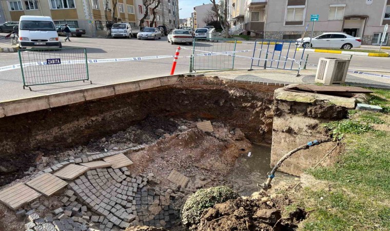 Meydana gelen çökmenin ardından Bandırma Belediyesi’ne ait ekipler tarafından yolun etrafına bariyerler çekilerek güvenlik önlemi alındı.