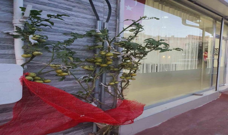 Eskişehir’in Tepebaşı ilçesindeki bir kaldırımın köşesinde yetişen ve üzerinde onlarca domates bulunun fide hayrete düşürürken gelip geçenlerin ilgisini çekiyor.