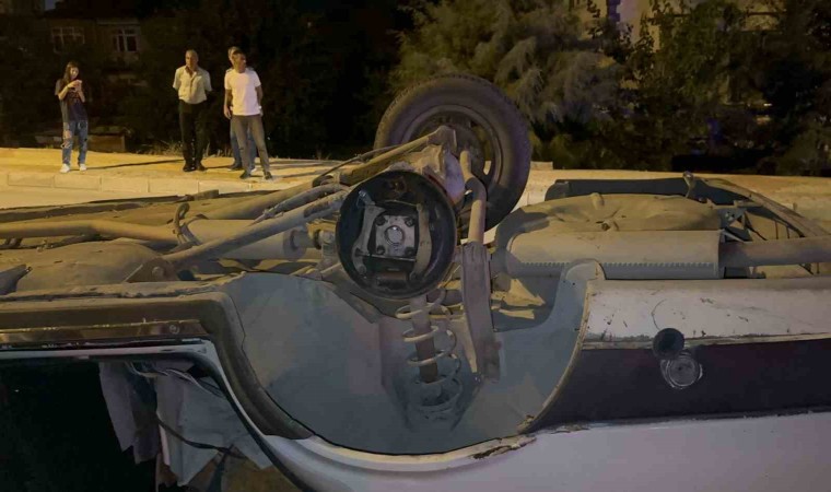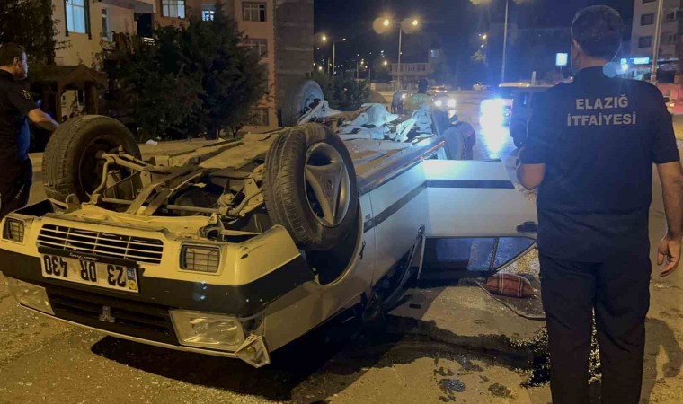 Elazığ’da kontrolden çıkan otomobil kaldırıma çarptıktan sonra tekeri koptu, ardından karşı şeride uçtu. Takla atarak ters dönen araçta bulunan 4 kişi kazayı yara almadan atlattı.