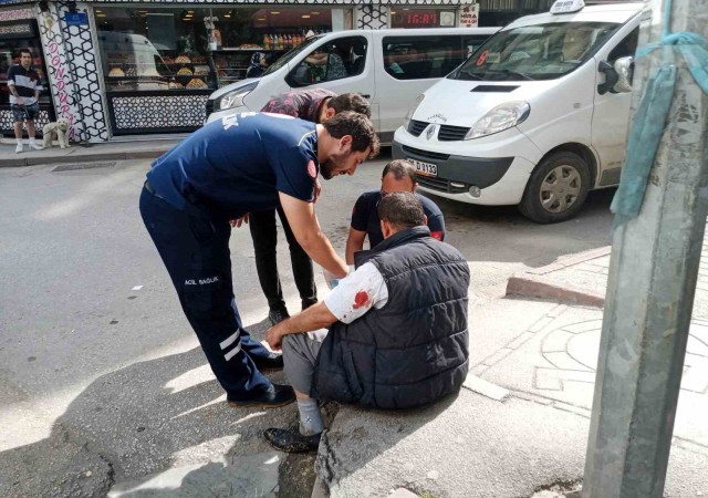 Kaldırımdan düşerek hafif yaralanan adam ilk yardım yapılmasını kabul etmedi