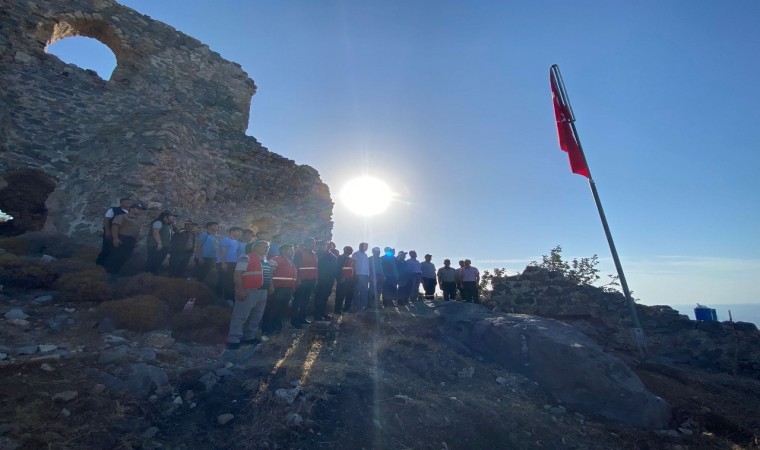 Mersin’in Bozyazı ilçesinde cumhuriyetin 100. yılı etkinlikleri çerçevesinde ilçe merkezindeki kalede bulunan Türk bayrağı yenilenerek göndere çekildi.