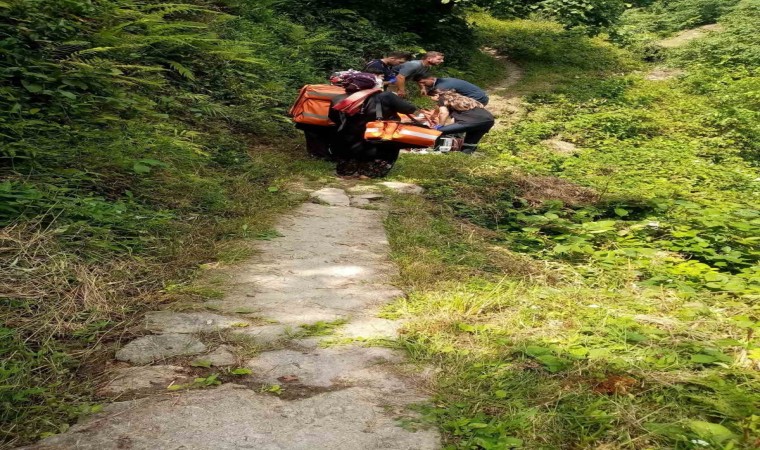 Trabzon’un Sürmene ilçesinde kalp krizi geçiren yaşlı kadını sedye üzerinde ambulansa taşıyan sağlık ekipleri, hastaya patika yolda müdahale etmek zorunda kaldı.