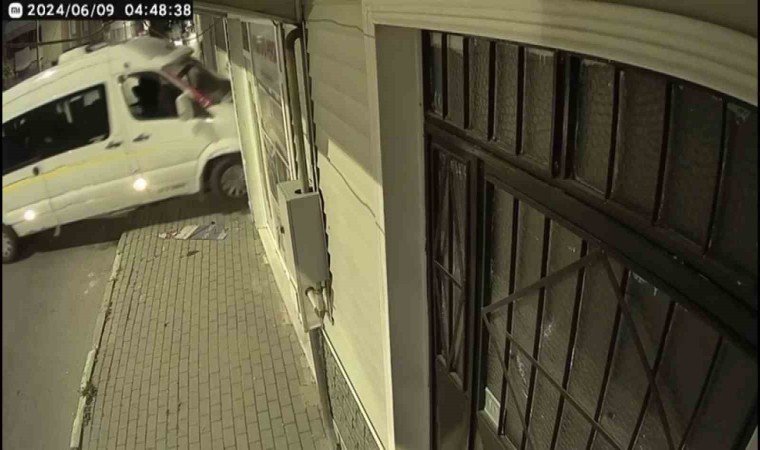 Bursa’da kalp spazmı geçiren servis şoförü, tekstil atölyesine girdi. Yaklaşık 4 dakika boyunca kalp spazmı geçiren şoför, daha sonra kendine gelerek yoluna devam etti. Kaza anı işyerinin güvenlik kamerasına yansırken atölyede kimsenin bulunmaması faciayı önledi.