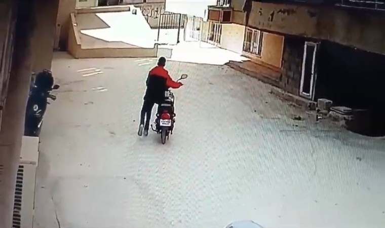 Durmak bilmeyen hırsızlık şüphelisi, bu defa da Kerim Emek isimli vatandaşın evinin önüne park ettiği elektrikli bisikleti çaldı. Şüpheli şahıs o anları kaydeden güvenlik kamerasına aldırış etmeden bindiği elektrikli bisikletle kayıplara karıştı.