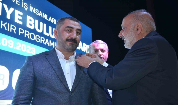 Yapılan konuşmaların ardından KAMİAD’a yeni üye olan Diyarbakırlı iş adamlarına DTSO Başkanı Mehmet Kaya rozetlerini taktı.