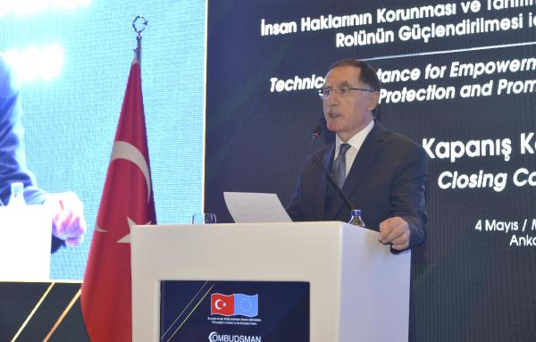 Kamu Başdenetçisi Şeref Malkoç, Ankara'da bir otelde düzenlenen 'İnsan Haklarının Korunması ve Tanıtımında Kamu Denetçiliği Kurumunun Rolünün Güçlendirilmesi Projesi'nin kapanış konferansına katıldı. Konferansa, Malkoç'un yanı sıra Adalet Bakan Yardımcısı Yakup Moğul, Avrupa Birliği Türkiye Delegasyonu Sivil Toplum, Temel Haklar, Yargı ve İçişleri Bölüm Başkanı Alexander Fricke ve Avrupa Birliği ile İlişkiler Genel Müdürü Elif Kurşunlu katıldı.