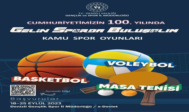 Voleybol, basketbol ve masa tenisi gibi popüler spor dallarında yapılacak müsabakalara katılmak isteyen kamu personeli, başvurularını 18 ile 25 Eylül tarihleri arasında e-Devlet üzerinden ‘Spor Bilgi Sistemi’ veya Denizli Gençlik Spor İl Müdürlüğü’ne gerçekleştirebilecek. İl müsabakaları 26 Eylül - 01 Ekim tarihleri arasında yapılacak. Üç branşta yapılacak yarışmalarda illerini şampiyon tamamlayan takımlar, gruplara katılım hakkı elde edecek. Detaylı bilgi için Denizli Gençlik Spor İl Müdürlüğü’nün internet adresi ve kurum telefonundan bilgi alınabilecek.