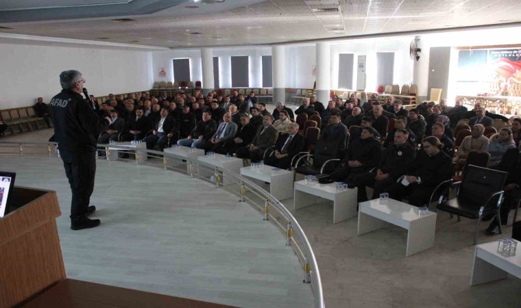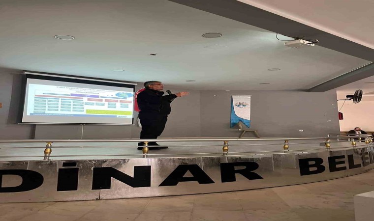 Afyonkarahisar’ın Dinar ilçesinde kamu kurum ve kuruluşları ile muhtarlara yönelik afet ve acil durumlarla ilgili bilgilendirme toplantısı Kaymakam Kemal Duru ve İl AFAD Müdürü Mehmet Buldan’ın katılımı ile gerçekleşti.