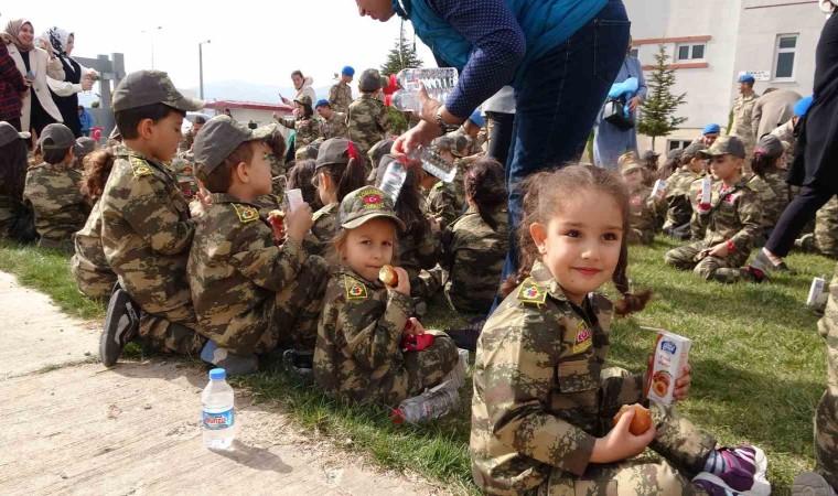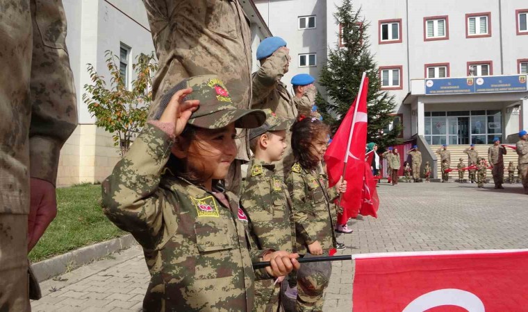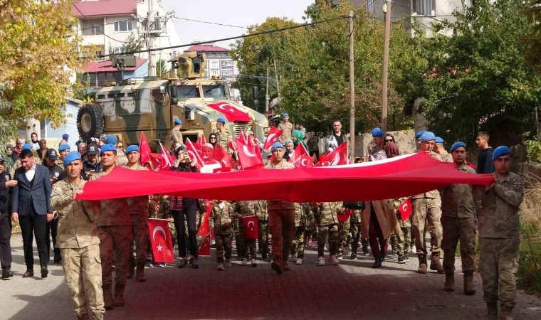 Yurdun dört bir tarafında 100. yıla özel etkinlikler son hızıyla devam ediyor. Etkinlikler çerçevesinde Bitlis’in Tatvan ilçesinde bulunan Cumhuriyet Anaokulunun öğretmenleri ve yaklaşık 120 öğrencisi, ellerinde ay-yıldızlı bayraklarla Tatvan Jandarma Komando Özel Harekat Tabur Komutanlığına yürüdü. 20 metrekarelik devasa Türk bayrağı ile yapılan yürüyüşe minik öğrencilere, öğretmen ve velilerin yanı sıra Tatvan İlçe Emniyet Müdürlüğü personelleri ve Tatvan Jandarma Komando Özel Harekat Tabur Komutanlığı personelleri de eşlik etti. Tabur Komutanlığına yürüyen minikleri askerler karşıladı. Düzenlenen karşılama törende saygı duruşunun ardından İstiklal Marşı okundu. İkramların dağıtıldığı etkinlikte hatıra fotoğrafının ardından program son buldu.