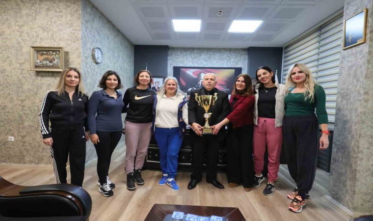 Denizlili Kadın Voleybolcular kazandıkları kupayı Gençlik Spor İl Müdürü Ömer İlman’a getirerek başarı hikayelerini İlman’la paylaştı. Takım olarak güzel bir arkadaşlık ortamı kurduklarını söyleyen voleybolcular, Denizli’yi en iyi şekilde temsil ettiklerini söyledi. Başarılarından dolayı Kadın Voleybol Takımını kutlayan İl Müdürü İlman, sporculara başarı belgesi ve isimleri yazılı milli takım forması takdim etti.