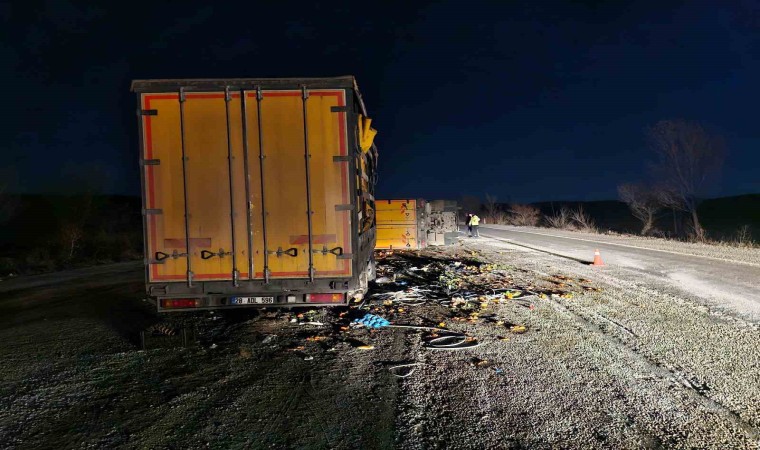 Çorum’un Alaca ilçesinde devrilen kamyondaki mandalinaların saçıldığı yol kısa süreliğine trafiğe kapandı. Sürücü kazadan yara almadan kurtuldu.