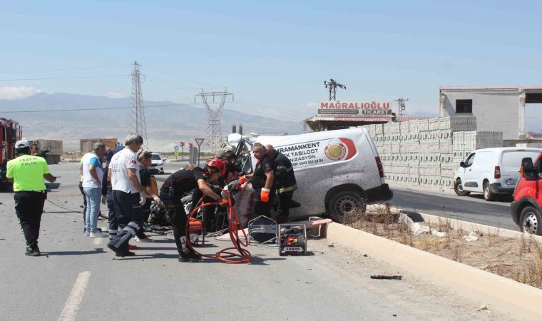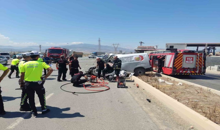 Kahramanmaraş’ta yük taşıyan kamyon ile hafif ticari aracın çarpışması sonucu bir kişi ölürken, kaza anı saniye saniye görüntülendi.