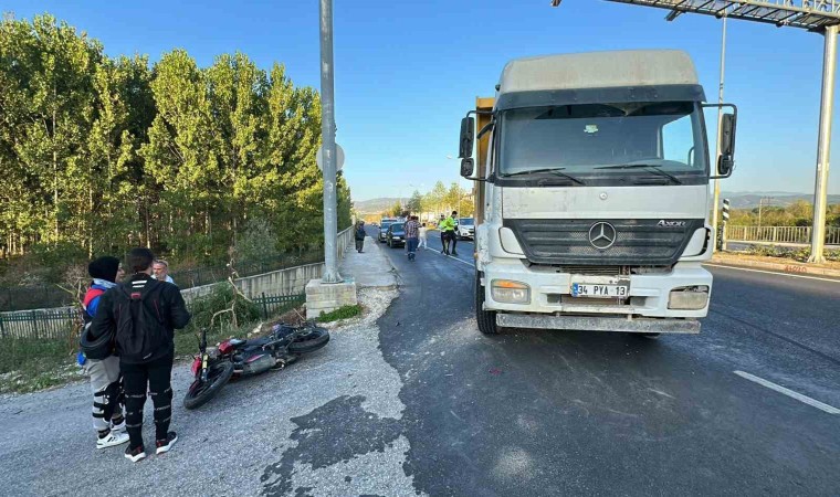 Düzce’de kamyon ile motosikletin çarpıştığı kazada 1 kişi yaralandı.