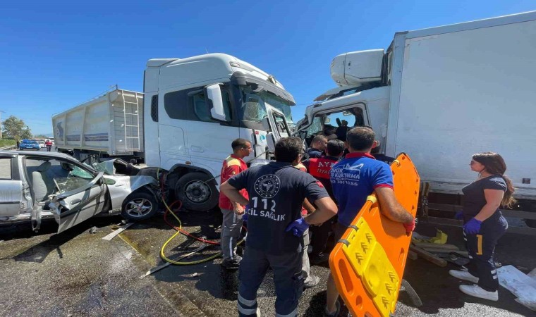Kaza, Didim-Söke karayolu üzerinde bulunan Sarıkemer Kavşağı’nda meydana geldi. Edinilen bilgiye göre, Milas’tan Söke istikametine seyir halinde olan 35 AZC 516 plakalı kamyon, henüz bilinmeyen bir nedenle karşı şeride geçip seyir halindeki 06 DEJ 107 tır ve 35 AS 6569 otomobile çarptı. Kazayı görenlerin ihbarı üzerine bölgeye sağlık, polis ve itfaiye ekipleri sevk edildi. Araçlarda sıkışan 3 yaralıyı itfaiye ekipleri çıkardı. Sağlık ekipleri, yaralıları Söke Fehime Faik Kocagöz Devlet Hastanesi’ne kaldırdı. Kaza nedeniyle Söke’den Didim istikametine trafik akışı durdu.