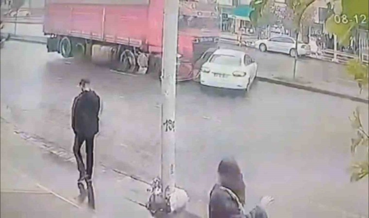 Edinilen bilgiye göre, kaza Bağlar ilçesi Yenihal mevkii Özgüt taksi durağı önünde yaşandı. Seyir halindeki kamyon, sürücüsünün direksiyonu önüne kırdığı otomobile çarptı. Duramayan kamyon, önüne aldığı otomobili metrelerce sürükledi. Kazada otomobilde maddi hasar oluştu. Kamyonun otomobili caddede sürüklemesi saniye saniye güvenlik kamarasına yansıdı.