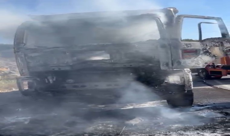 Mersin’de kupa kısmında yangın çıkan kamyon kullanılamaz hale geldi.